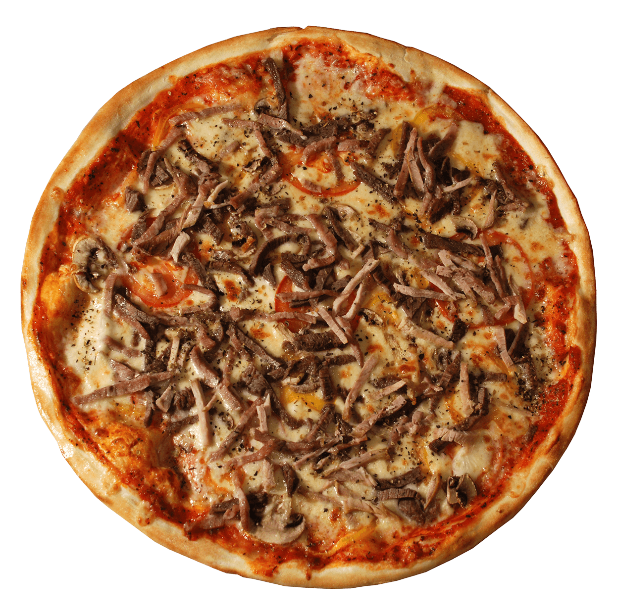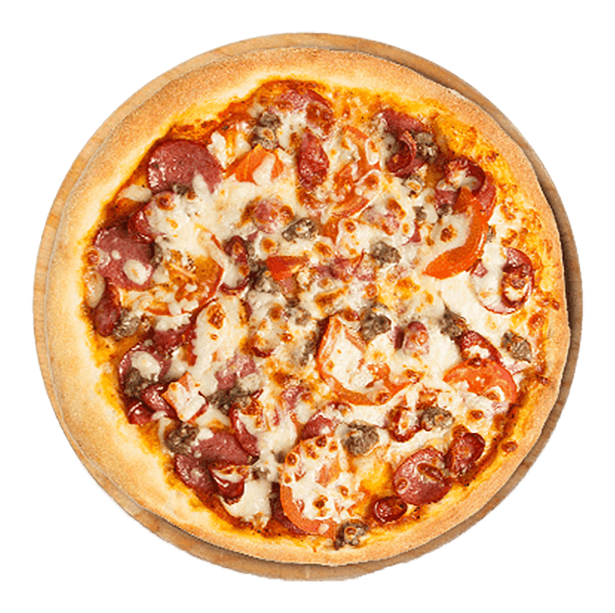 Tomate, mozzarella, viande hachée, merguez, oignons , poivrons.
