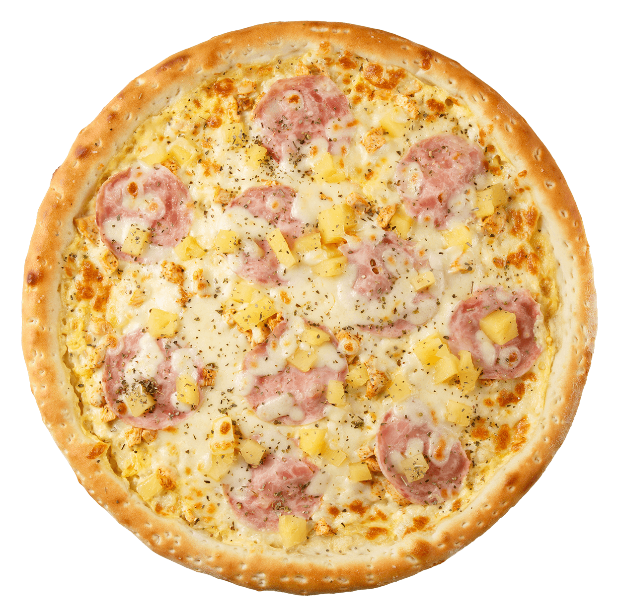 Tomate, mozzarella, jambon, bacon, chèvre.