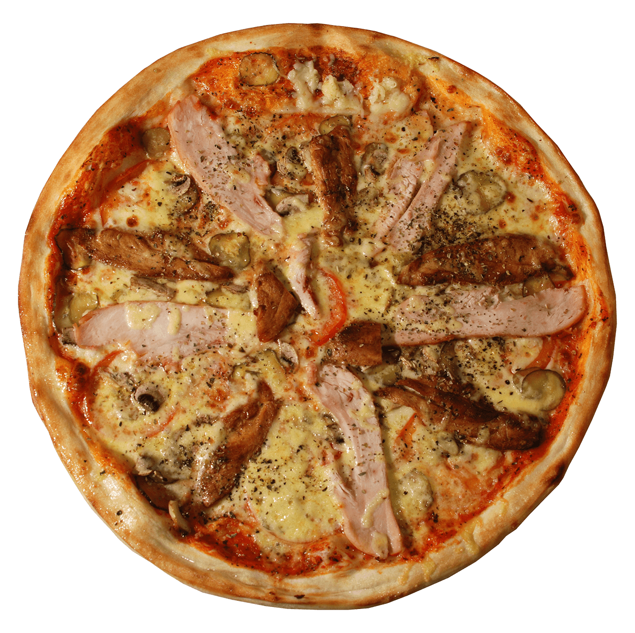 Tomate, mozzarella, poulet, viande hachée, merguez.