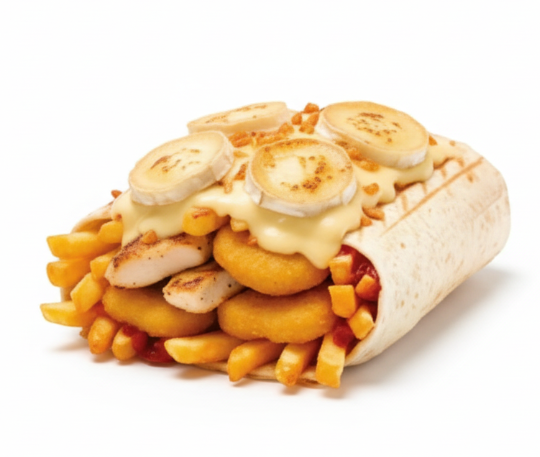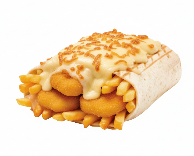 poulet, tenders, sauce burger, fromage gratiné raclette