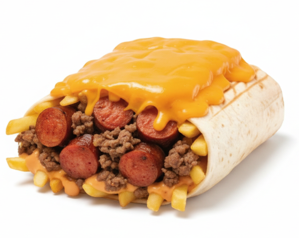 vainde hachée, merguez, sauce américaine, fromage gratiné cheddar