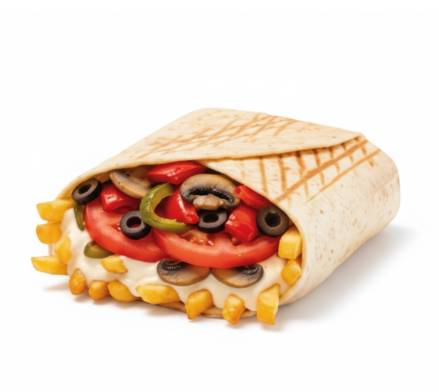 kebab, poulet, sauce algérienne, fromage gratiné raclette