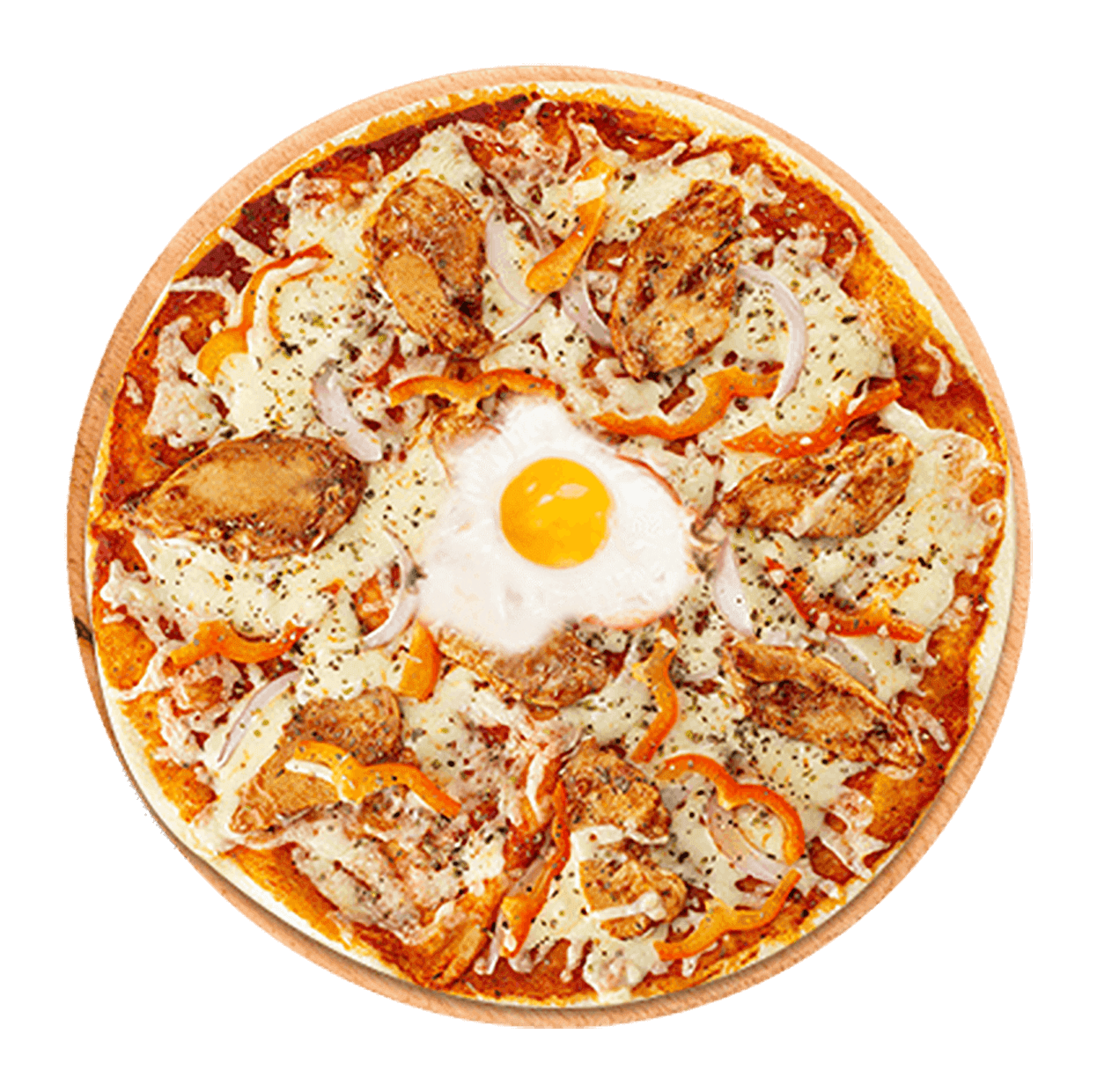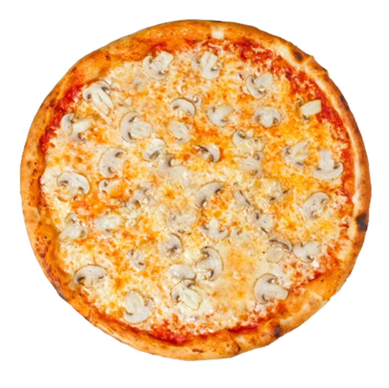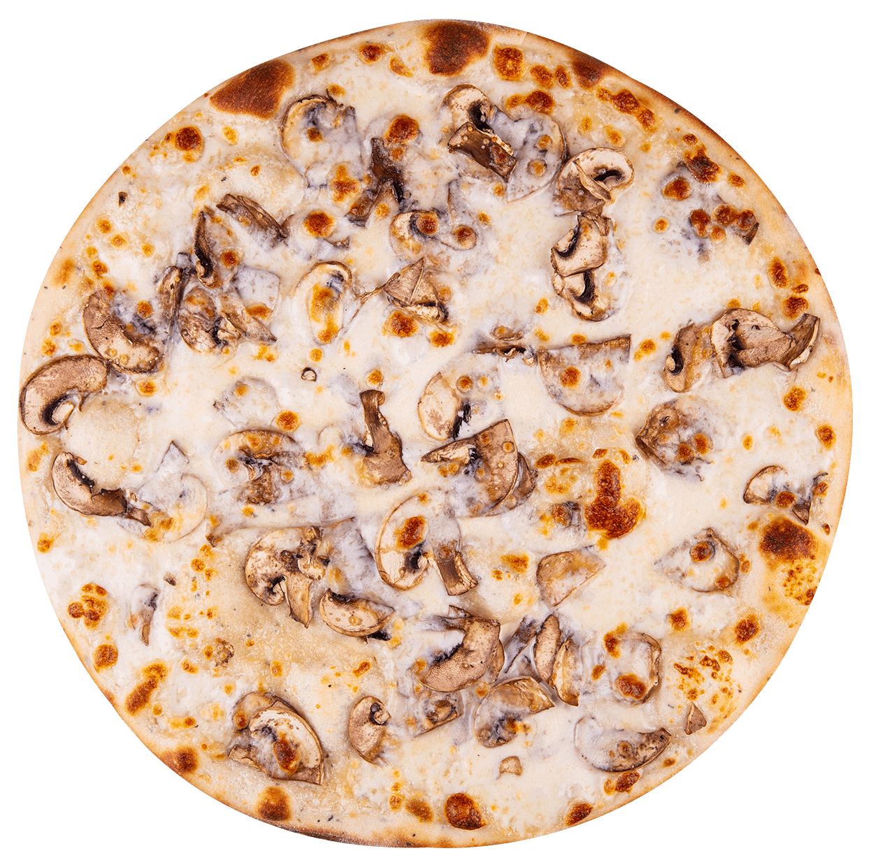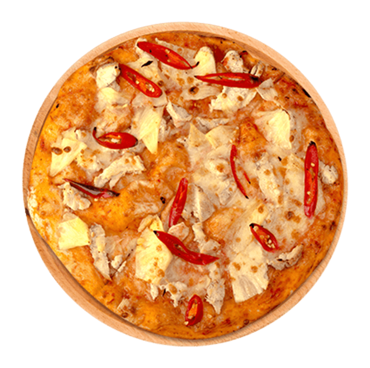 Crème fraîche, mozzarella, poulet tikka, champignons.