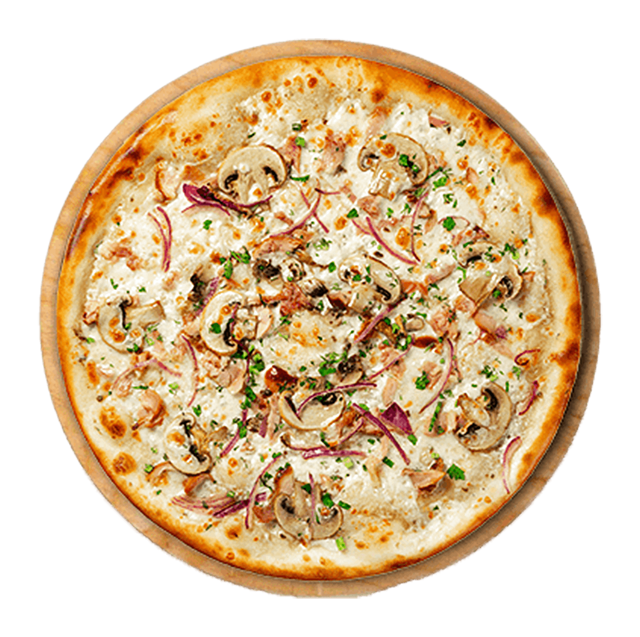 creme fraiche , lardon , bacon , champignons , oignons rouge