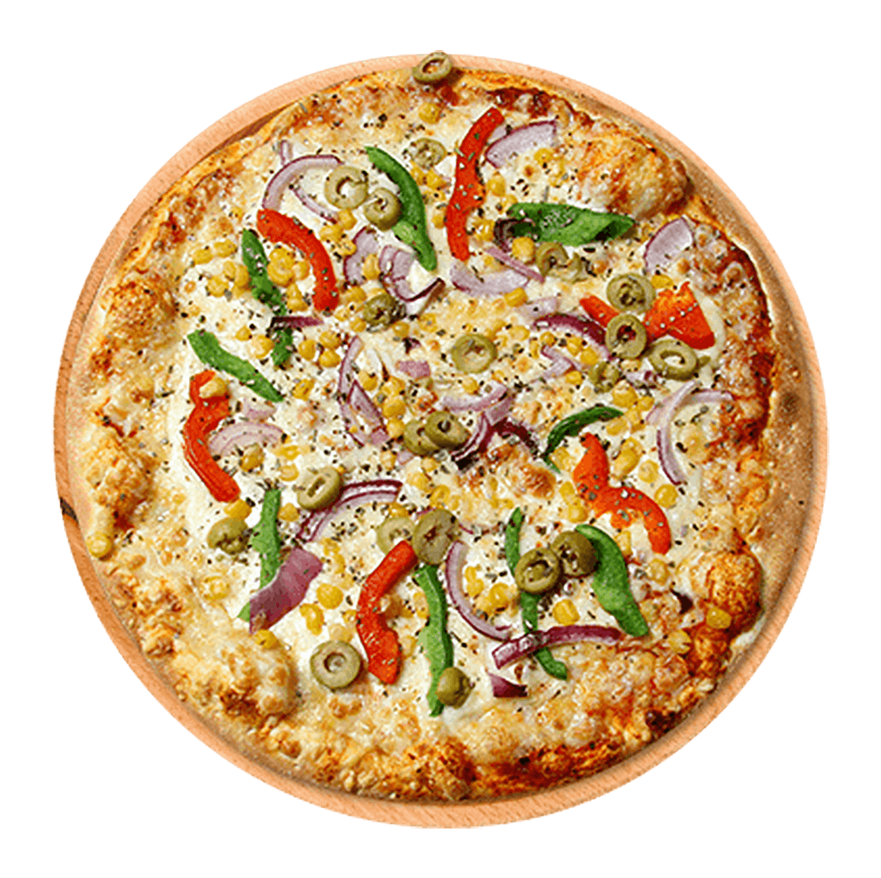 Tomate, mozzarella, champignons, oignons, artichauts, poivrons, olives, tomates confites.
