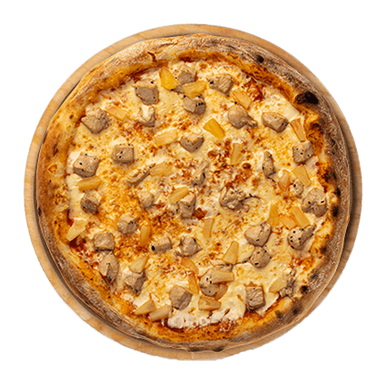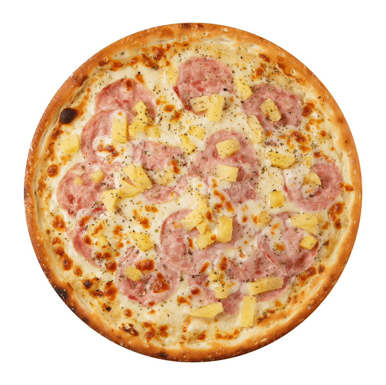 Tomate, mozzarella, jambon, ananas.